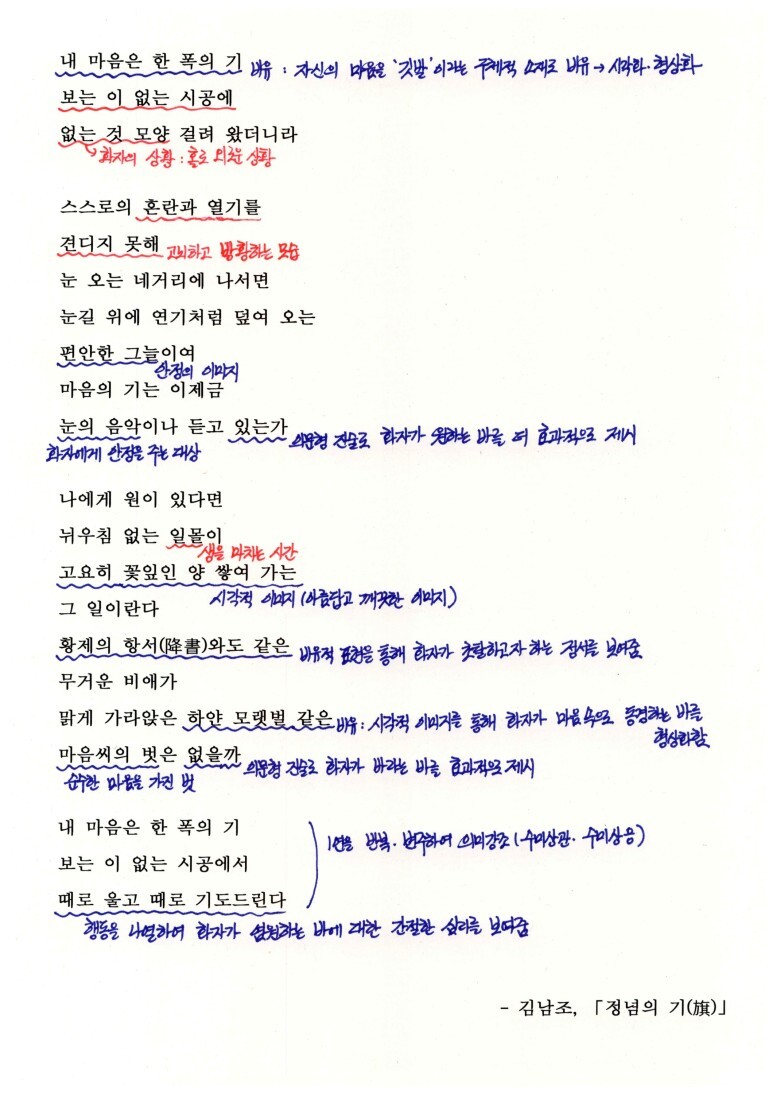 - 김남조, 「정념의 기(旗)」