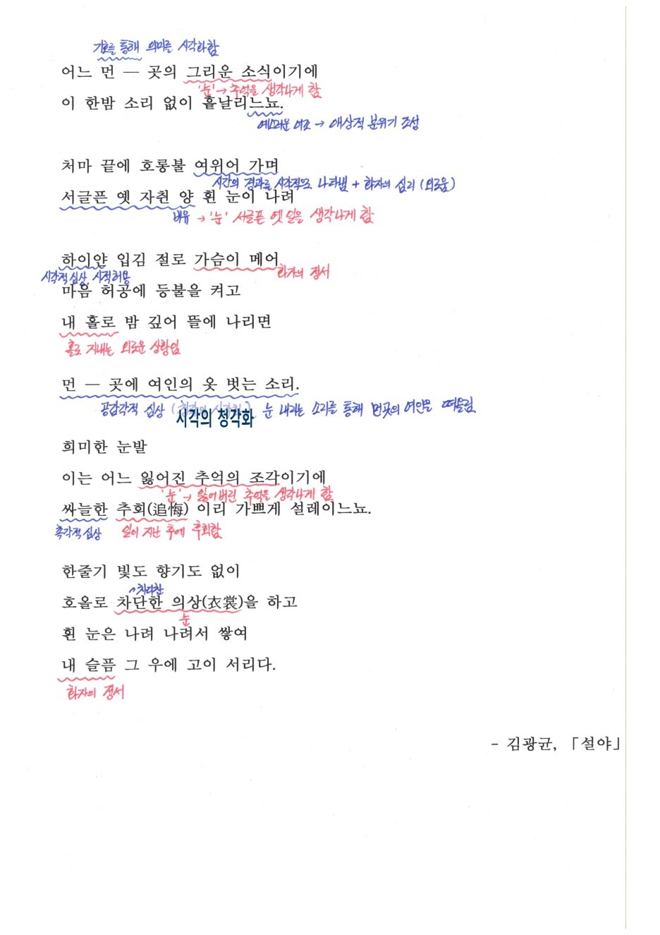 - 김광균, 「설야」