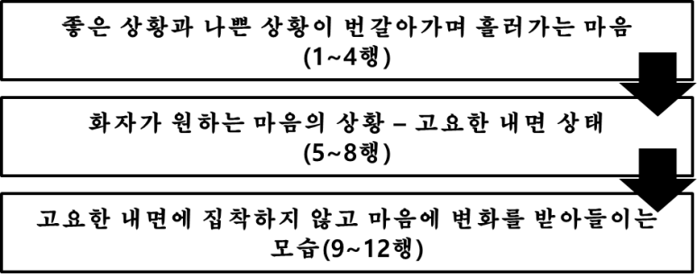 이렇듯 시인은 '어느 한 상태에 집착하지 않고 있는 그대로의 내면을 받아들이는 자세'를 드러내고 있습니다.