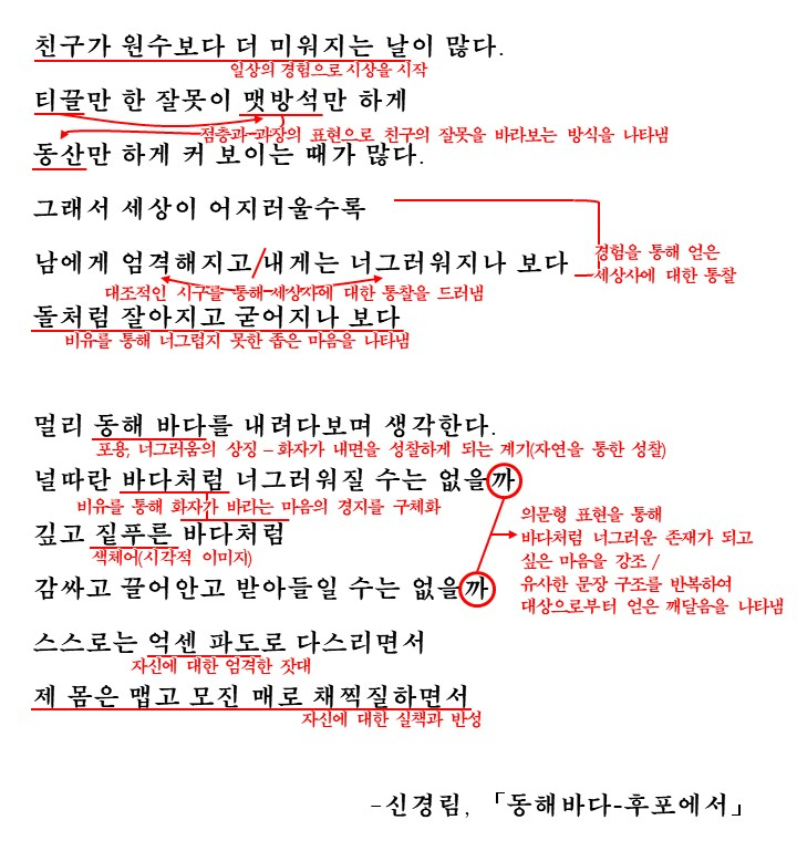 그럼 시인이 자신을 성찰하는 태도에 주목하며 시를 읽고 해석을 공부해보도록 합시다.