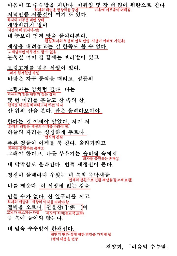 - 천양희, 「마음의 수수밭」