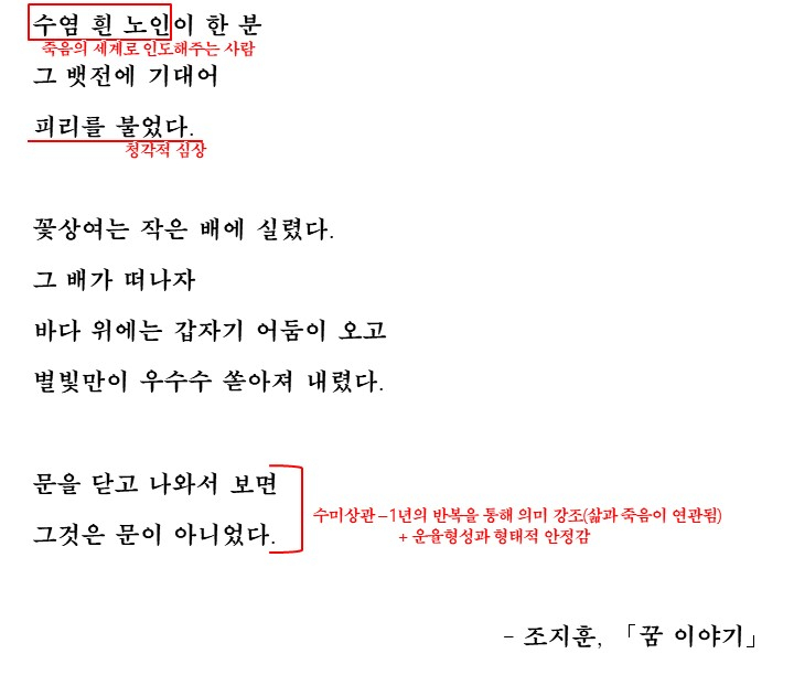 '죽음'에 대한 인식은 삶에서 빼놓을 수 없는 것입니다. 그만큼 삶과 밀접하게 연결되어 있는 것이 바로 죽음인데요. 이번에 다룰 시 '꿈 이야기'에서는 꿈 속에서 본 장면을 통해 화자가 죽음에 인식한 내용이 표현됩니다.