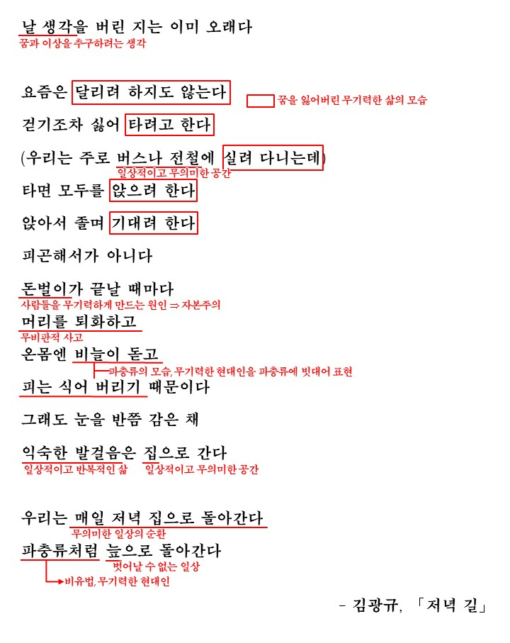 #김광규 #저녁길 #시분석 #시해설 #시정리 #시해석 #수능특강 #모의고사