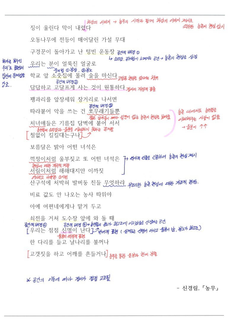 정말 산업화, 도시화로 지친 농민들의 마음을 잘 표현한 시가 아닐까 싶네요.