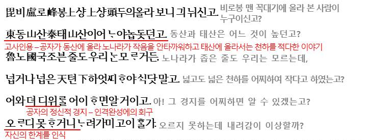 비로봉에서는 공자의 정신적 경치를 생각하며 인격 완성에의 희구를 하죠.