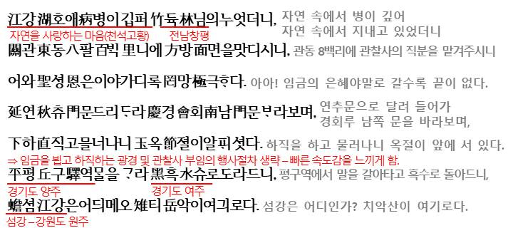 한 때는 많은 수험생을 좌절하게 했다는 정철 3부작 중 하나인 관동별곡.