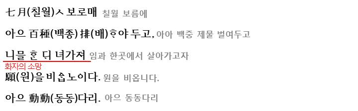 칠월에는 님과 함께하고 싶은 화자의 소망이 드러납니다.