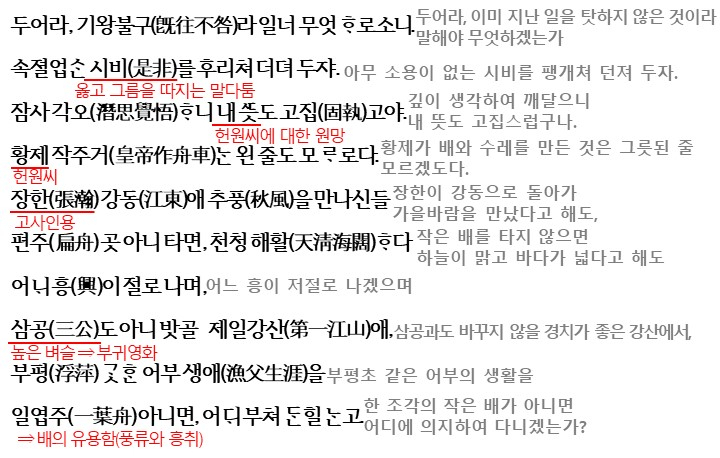 그럼 이제 현대어 해석을 다시보며 작품의 내용을 다시 떠올려보고 학습을 마무리해보도록 합시다.