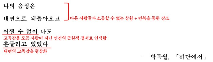 이렇게 해서 이 시는 '인간의 근원적인 정서인 내적인 고독'에 대해 이야기하고 있습니다.