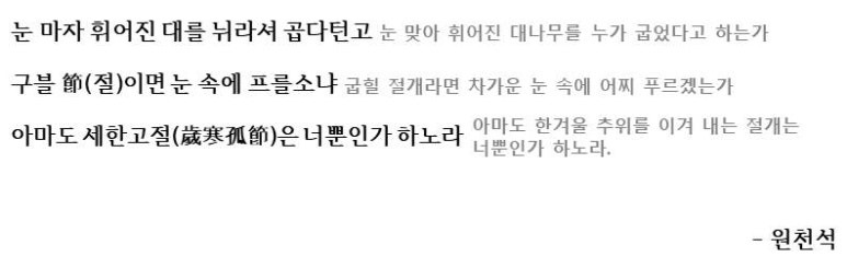 이렇게 이 시는 '추위를 견디는 대나무의 지조와 절개'를 노래하고 있습니다.