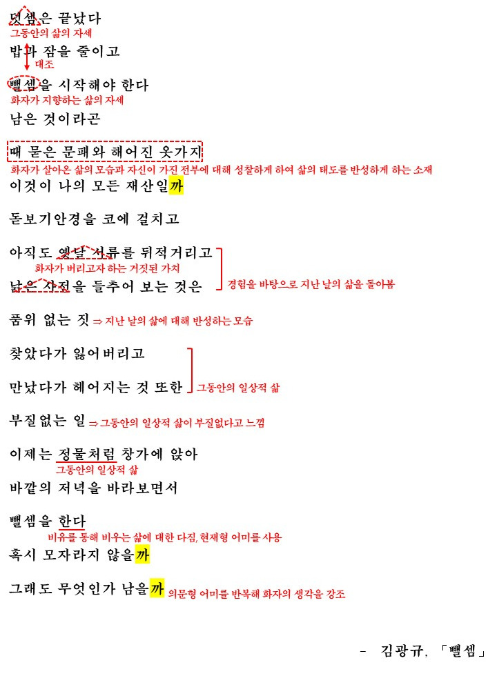 이번에 다룰 김광규 시인의 '뺄셈'은 제목에서부터 시 전체의 주제를 명확하게 드러냅니다. 이 시는 인생의 마지막 단계에서 욕심과 미련을 비워내는 삶의 태도를 '덧셈'과 '뺄셈'이라는 대비를 통해 깊이 있게 성찰하는데요. 지금부터 본문을 읽은 후 해석을 통해 학습해보도록 합시다.