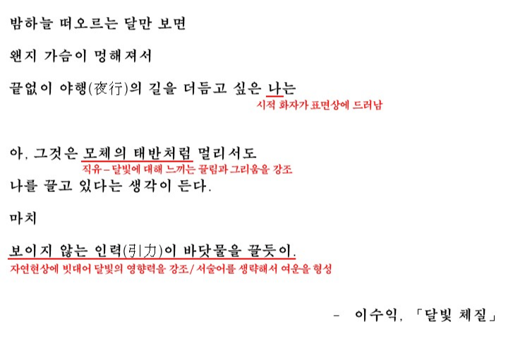 - 화자의 정체성 → 달빛 체질, 즉 달을 닮은 삶