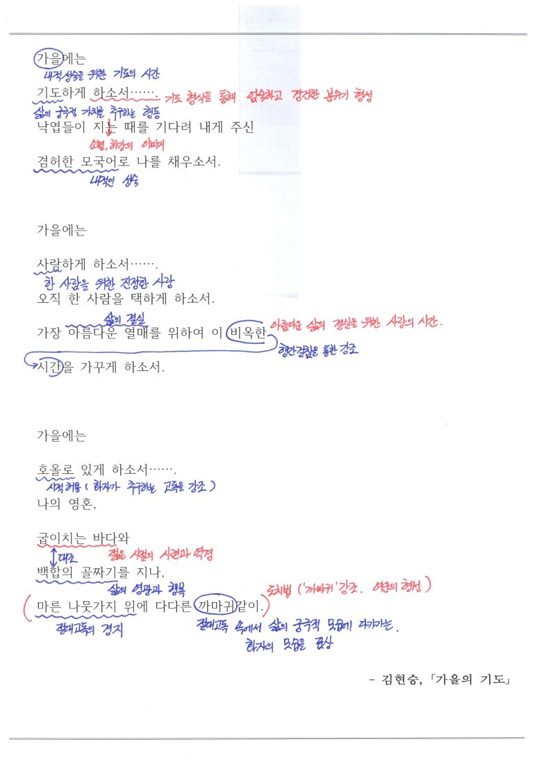 - 김현승, 「가을의 기도」