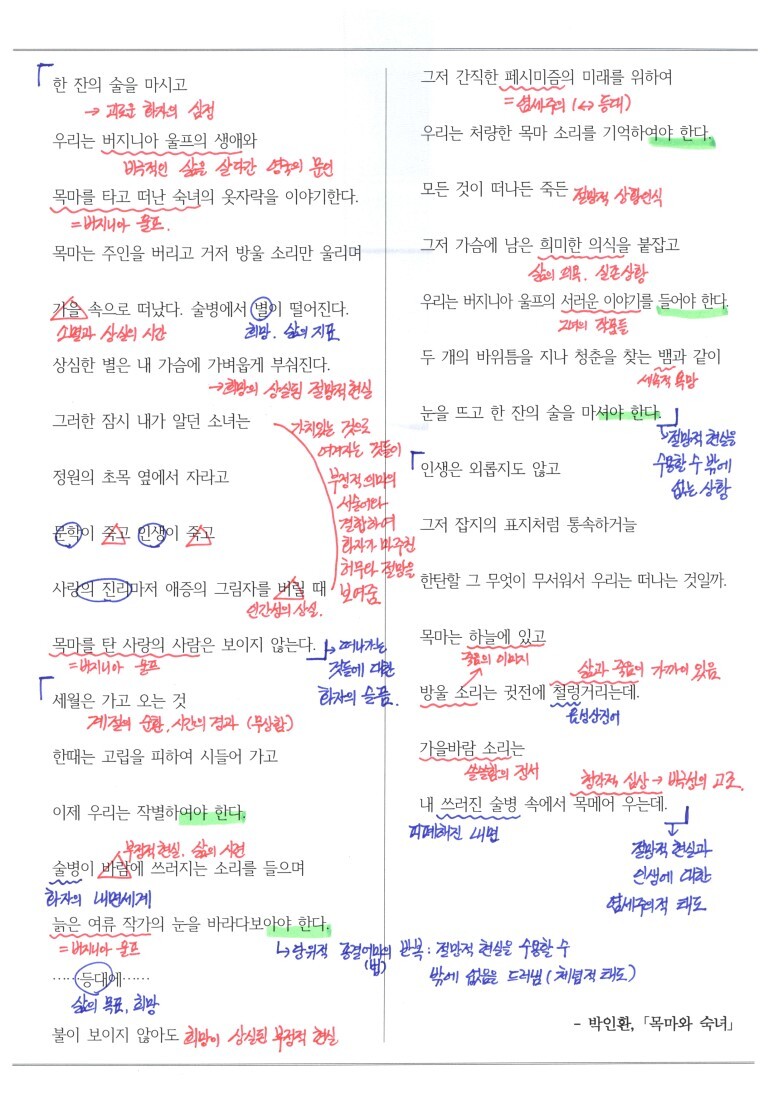 모든 순간에 항상 긍정적일 수는 없습니다. 때로는 현실에 지쳐서 한없이 절망하고 좌절할 때도 있죠. 이번 시간에 다룰 '목마와 숙녀' 역시 그렇습니다. 6.25를 경험한 후 시인이 느낀 문명과 인간에 대한 한없는 절명과 좌절을 노래하고 있습니다. 때문에 이 시는 어쩌면 난해하고 어쩌면 그저 우울하기만 합니다.